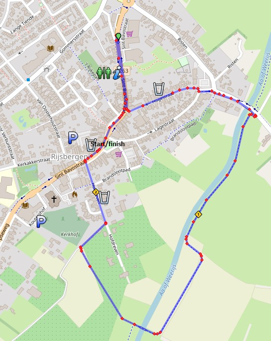 We hebben weer een mooi parcours door het feestelijke en gezellige Rijsbergen en langs de mooie natuur van de Aa of Weerijs. Het is een ronde van 2,5 km, die je dus 1, 2 of 4 keer loopt.